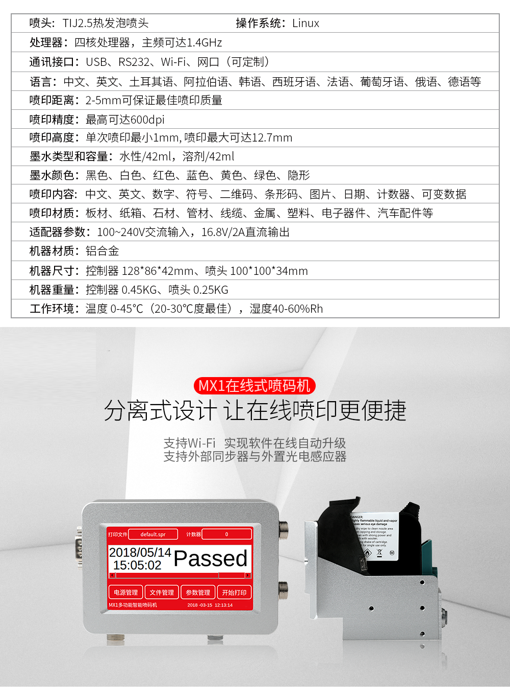 在線式噴碼機MX1,在線式惠普墨盒噴碼機