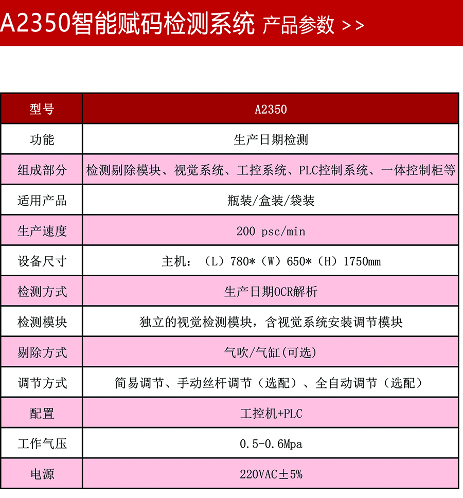 日期檢測功能特點(diǎn)詳解: 通過字符識(shí)別技術(shù)(OCR)檢測產(chǎn)品上的三期信息是否合格。 可檢測漏打碼、字符殘缺、模糊、重碼、偏移、內(nèi)容錯(cuò)誤等噴碼缺陷。 支持激光打碼、墨水噴碼、碳帶打印等多種打碼方式的檢測應(yīng)用。 安裝在客戶生產(chǎn)線上,在線檢測。并自動(dòng)剔除不合格產(chǎn)品。 可存儲(chǔ)多組檢測參數(shù),換產(chǎn)時(shí)可直接調(diào)用,可快速完成切換產(chǎn)品操作。 該檢測系統(tǒng)廣泛應(yīng)用在醫(yī)藥、食品、日化、化工等行業(yè)。包括標(biāo)簽打碼、外箱噴碼、瓶子噴碼等標(biāo)識(shí)的檢測。對每個(gè)產(chǎn)品打碼的效果進(jìn)行檢驗(yàn),有效的避免消費(fèi)者對貴司產(chǎn)品品牌形象的不良影響。 拓展應(yīng)用: 支持日期內(nèi)容自動(dòng)同步系統(tǒng)時(shí)間功能。減少人工設(shè)置操作。 支持與客戶系統(tǒng)對接。從客戶服務(wù)器獲取對比數(shù)據(jù)。從而自動(dòng)設(shè)置檢測參數(shù)。無需人工干預(yù)。 支持噴碼背景有多種顏色的應(yīng)用場合?蛇x用彩色光源。保證圖像拍照效果最佳。切換相機(jī)方案時(shí),光源顏色同時(shí)自動(dòng)切換。 |